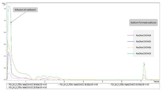 For the instrument calibration, a calibrant solution of sodium formate dissolved in 2-propanol water (1:1 v/v) was employed.
