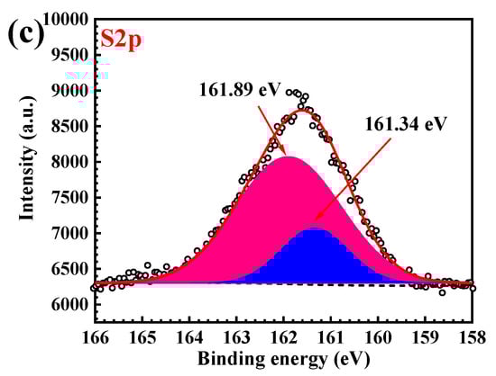 The growth mechanism regarding the formation of spherical CdS, based on using thiourea as a sulfur source, was proposed previously in the literature [17]. In the first step, after the addition of the S2− solution to the Cd2+ solution, thiourea (TU) acts as a ligand. The stable Cd-TU complex can be generated. After that, during hydrothermal synthesis, the temperature of the system increases to more than 100 °C. The weakening of the Cd-TU complex occurred. This causes the slow release of Cd2+ ions. After that, TU can be attacked by oxygen (O) atoms from water (strong nucleophiles). This leads to the weakening of S=C double bonds so that slow release of S2− anions can be found. The formation of CdS nuclei can occur after S2- reacts with the pre-released Cd2+. These nuclei will act as seeds for the subsequent crystal growth process. All in all, after the nucleation process, the formation of spherical CdS is expected. The mechanism can be adapted when using thioacetamide (TAA) as a sulfur source. The complex between the Cd2+ and TAA can be proposed. Accordingly, the formation of CdS is similar to that explained previously.