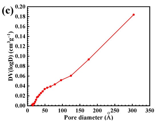 TG thermogram (a), N2 adsorption−desorption isotherm (b), and pore size distribution curve (c) of the CdS.