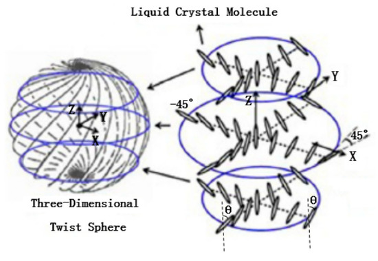 The model of the three-dimensional twist sphere structure in the sphere phase [71]. Reprinted with permission from Ref. [71]. 2019 MDPI.