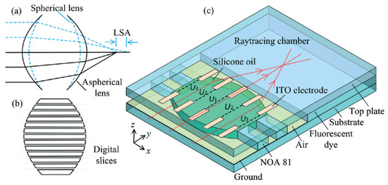 - Wang, L.; Hayakawa, T.; Ishikawa, M. Dielectric-Elastomer-Based Fabrication Method for Varifocal Microlens Array. Opt. Express 2017, 25, 31708–31717. [Google Scholar] [CrossRef]