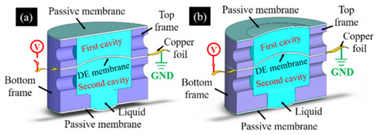 - Zhang, C.; He, H.; Li, Y.; Sun, Y.; Dong, Z. Modeling and Design of Dielectric Elastomer Actuated Tunable Lens with Dual Chambers. AIP Adv. 2022, 12, 075119. [Google Scholar] [CrossRef]