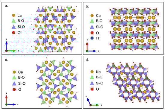 - Shvanskii, E.V.; Leonyuk, N.I.; Bocelli, G.; Righi, L. Crystallization and Structural Characteristics of New Borosilicates. J. Solid State Chem. 2000, 154, 312–316. [Google Scholar] [CrossRef]