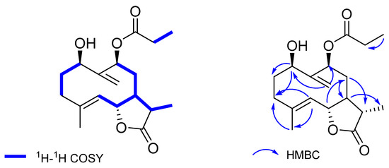 - Marco, J.A.; Sanz-Cervera, J.F.; Ocete, G.; Carda, M.; Rodríguez, S.; Vallès-Xirau, J. New Germacranolides and Eudesmanolides from North African Artemisia herba-alba. J. Nat. Prod. 1994, 57, 939–946. [Google Scholar] [CrossRef]