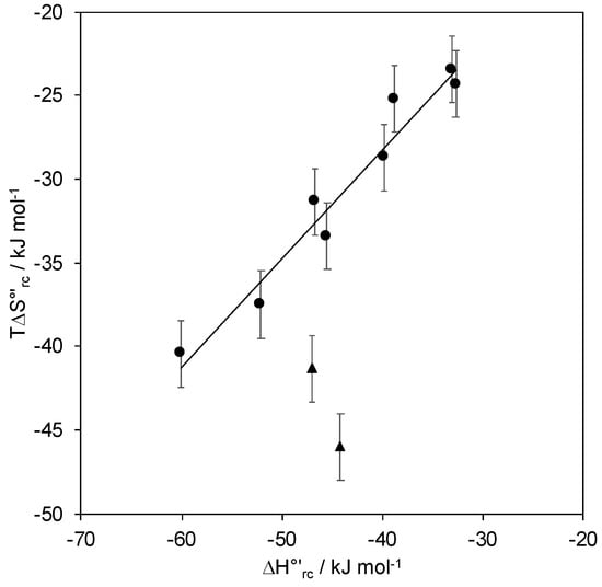 - Battistuzzi, G.; Borsari, M.; di Rocco, G.; Ranieri, A.; Sola, M. Enthalpy/Entropy Compensation Phenomena in the Reduction Thermodynamics of Electron Transport Metalloproteins. JBIC J. Biol. Inorg. Chem. 2004, 9, 23–26. [Google Scholar] [CrossRef]