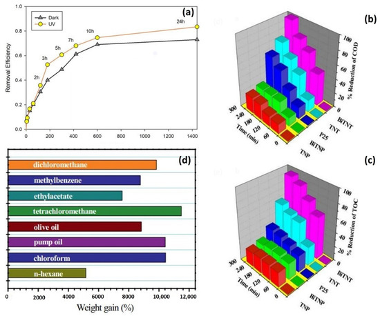 - Natarajan, T.S.; Natarajan, K.; Bajaj, H.C.; Tayade, R.J. Enhanced photocatalytic activity of bismuth-doped TiO2 nanotubes under direct sunlight irradiation for degradation of Rhodamine B dye. J. Nanopart. Res. 2013, 15, 1669. [Google Scholar] [CrossRef]