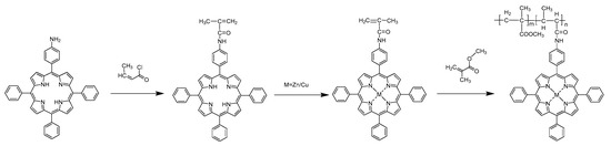 - Pechnikova, N.L.; Ageeva, T.A.; Syrbu, S.A. Synthesis and Complex Formation of Porphyrin Polymers on the Basis of Methyl Methacrylate. Russ. J. Gen. Chem. 2017, 87, 3102–3106. [Google Scholar] [CrossRef]