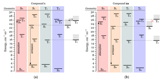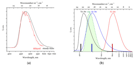 - Deng, D.; Suo, B.; Zou, W. New Light on an Old Story: Breaking Kasha’s rule in phosphorescence mechanism of organic boron compounds and molecule design. Int. J. Mol. Sci. 2022, 23, 876. [Google Scholar] [CrossRef]