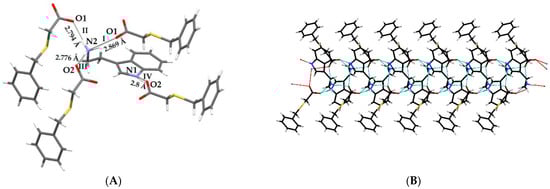 The carboxylic derivatives containing additionally aromatic/cyclic rings composed of mono- or heteroatoms and other potential binding sites, such as NH2, OH, SO2, NO2, halogens, N, O, S, and CH/CH2/CH3, act as excellent and versatile functional components in the creation of supramolecular architectures, as they provide various kinds of hydrogen bond acceptors and/or donors and the π-conjugated system for extending their networks [14]. According to the principles of crystal engineering, (benzylthio)acetic acid (HBTA) fits perfectly into the process of supramolecular complexation due to its chemical structure (Figure 1), which is composed of the following moieties: a carboxylic group, two CH2 entities, an organic sulphide –S– species and an aryl unit.