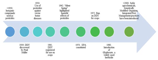 - International Union of Pure and Applied Chemistry. History of Pesticide Use. 2010. Available online: http://agrochemicals.iupac.org/index.php?option=com_sobi2&sobi2Task=sobi2Details&catid=3&sobi2Id=31 (accessed on 22 September 2022).