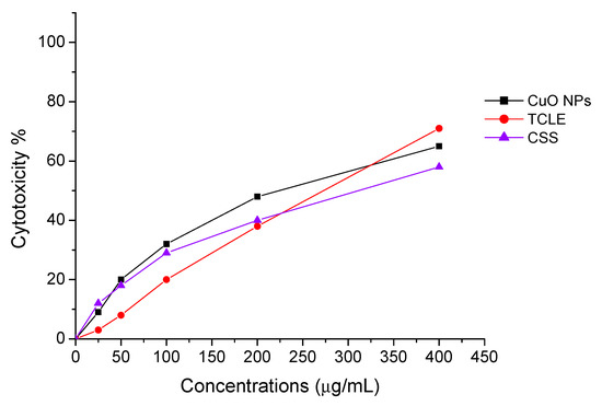 - Nagajyothi, P.C.; Muthuraman, P.; Sreekanth, T.V.M.; Kim, D.H.; Shim, J. Green synthesis: In-vitro anticancer activity of copper oxide nanoparticles against human cervical carcinoma cells. Arab. J. Chem. 2017, 10, 215–225. [Google Scholar] [CrossRef]