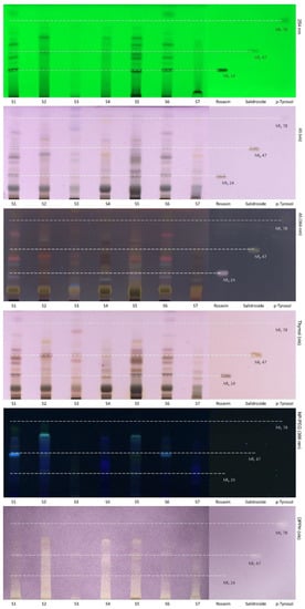 - Marston, A. Thin-layer chromatography with biological detection in phytochemistry. J. Chromatogr. A 2011, 1218, 2676–2683. [Google Scholar] [CrossRef]