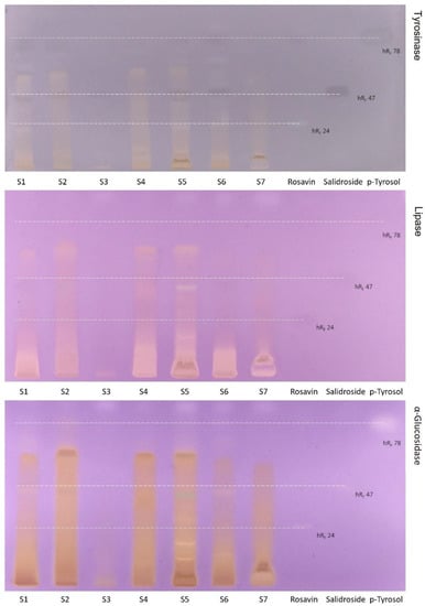 - Hassan, A.M.S. TLC bioautographic method for detecting lipase inhibitors. Phytochem. Anal. 2012, 23, 405–407. [Google Scholar] [CrossRef] [PubMed]