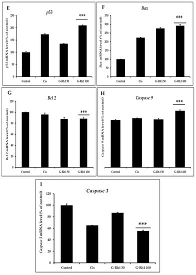 2.6. G-Rh1 Induced Apoptosis by Regulating Apoptotic Gene Expression