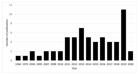 Annual number of anthelmintic papers published from 1964 to 2020 according to PubMed—situation as of July 2020.