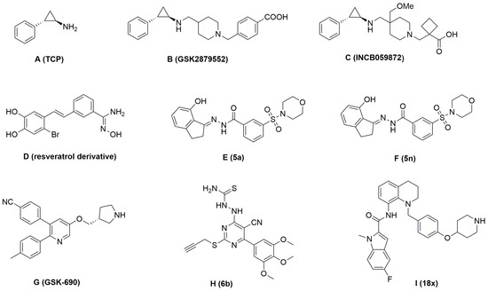 Structures of several reported LSD1 inhibitors.