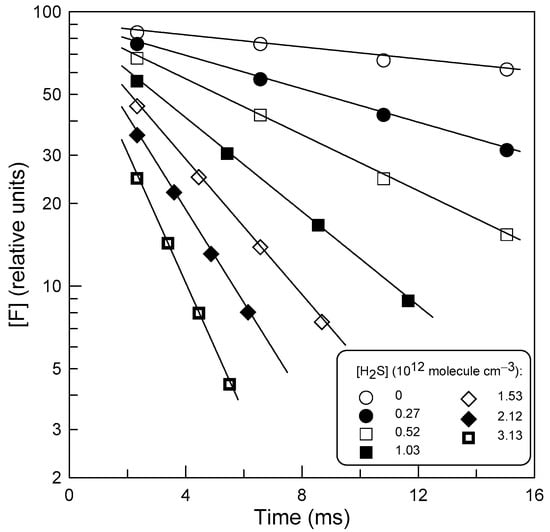 Typical F-atom decay profiles observed in the presence of different concentrations of H2S at T = 295 K.