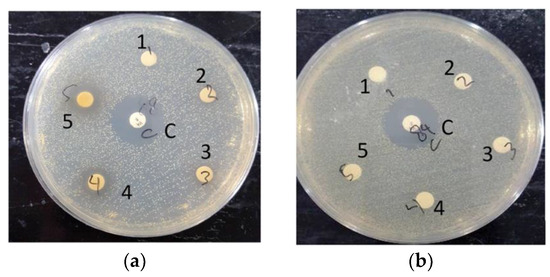 2.5. Agar Disk-Diffusion Assay for Antibacterial Activity Determination against MRSA Strain