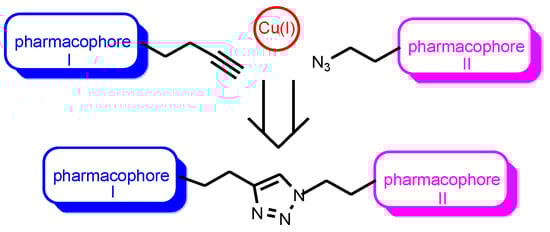 A copper-catalyzed “click” reaction of cycloaddition of organic azides to terminal acetylenes was proposed by Professor Sharpless and is used for the construction of biologically active conjugates [28,29,30] (Figure 1).