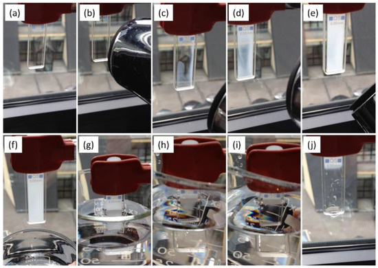 Representative cellulose ether aqueous solution during the heating cycle (frames (a–e)) and during reverse cooling process (frames (f–j)).