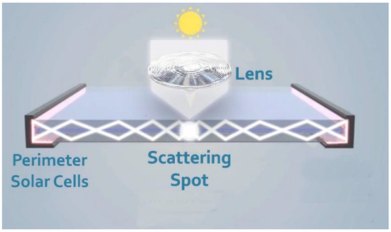 Schematized cross-section of the proposed self-tracking solar concentration-based photovoltaic window.