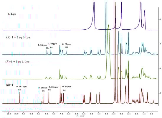 1H NMR spectra of the mixture of (R)-1 with varying equivalents s of LLys in a mixed solvent of DMSO/D2O (10/1).
