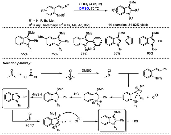 DMSO/SOCl2-promoted synthesis of 3-methylthioindoles [35].