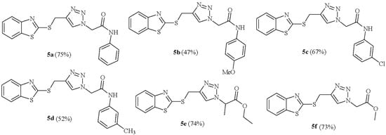 Efficient synthesis of novel 1,2,3-triazoles bearing the benzothiazole group 5a–f.
