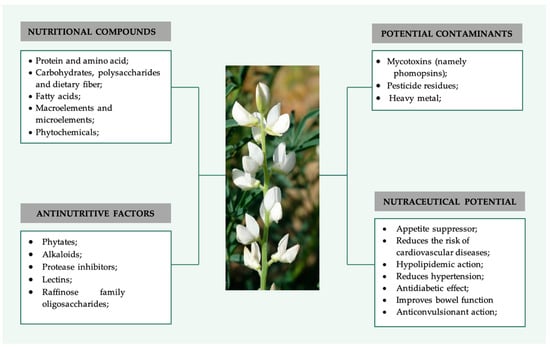 Pereira, A.; Ramos, F.; Sanches Silva, A. Lupin (Lupinus albus L.) Seeds: Balancing the Good and the Bad and Addressing Future Challenges. Molecules 2022, 27, 8557. https://doi.org/10.3390/molecules27238557