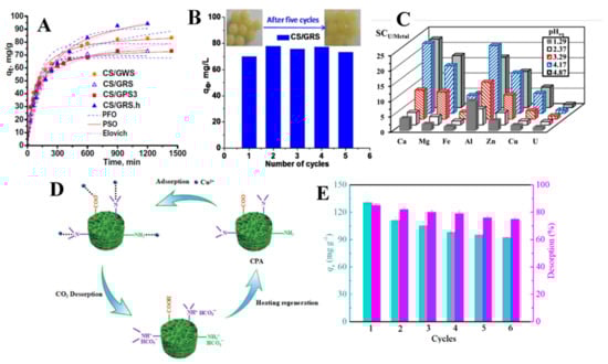 - Dragan, E.S.; Apopei Loghin, D.F.; Cocarta, A.I. Efficient Sorption of Cu2+ by Composite Chelating Sorbents Based on Potato Starch-graft-Polyamidoxime Embedded in Chitosan Beads. ACS Appl. Mater. Interfaces 2014, 6, 16577–16592. [Google Scholar] [CrossRef] [PubMed]