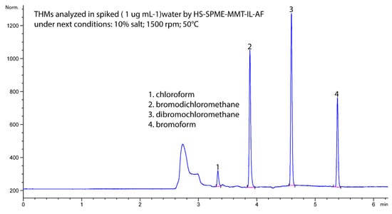 A typical chromatogram of HS-SPME configuration for THM extraction from spiked tap water with HS-SPME-MMT-IL on an agarose film.