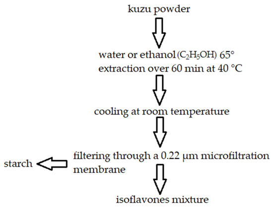 Extraction of kuzu starch and isoflavones. In this method, starch is a by-product. Own figure based on Ref. [64]. 2022, Mocan et al.