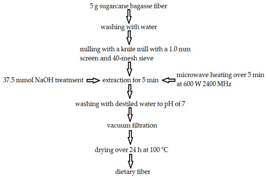 Production of dietary fiber from raw sugarcane bagasse fibers. Own figure based on Ref. [119]. 2022, Gil-López et al.