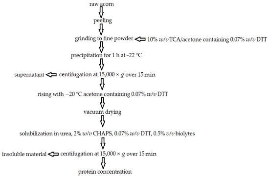 Flow chart of acorn protein extraction. Own figure based on Ref. [133]. 2022, Galván et al.