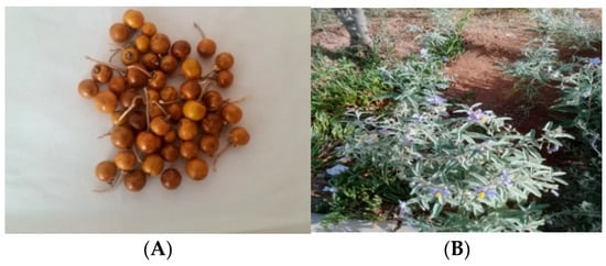 Photographs of S. elaeagnifolium; S. elaeagnifolium fruits (A) and S. elaeagnifolium aerial parts (B).