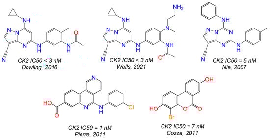 Examples of pyrazoloazines and other molecules with high affinity for CK2 [,,,,].