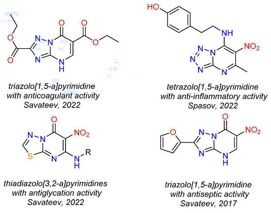 It should be noted that related azolopyrimidines are a privileged class of heterocycles in medicinal chemistry as they demonstrate a wide range of biological activities, in particular, anticoagulant [], anti-inflammatory [], antidiabetic [], hypotensive [], antiseptic [].