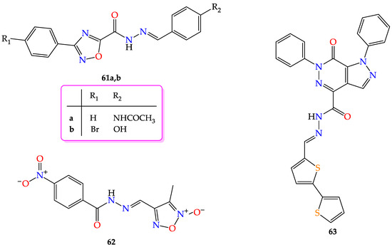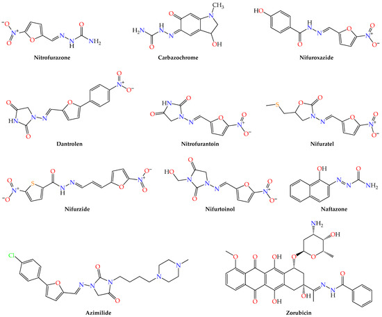 - Massarico Serafim, R.A.; Gonçalves, J.E.; de Souza, F.P.; de Melo Loureiro, A.P.; Storpirtis, S.; Krogh, R.; Andricopulo, A.D.; Dias, L.C.; Ferreira, E.I. Design, synthesis and biological evaluation of hybrid bioisoster derivatives of N-acylhydrazone and furoxan groups with potential and selective anti-Trypanosoma cruzi activity. Eur. J. Med. Chem. 2014, 82, 418–425. [Google Scholar] [CrossRef] [PubMed]