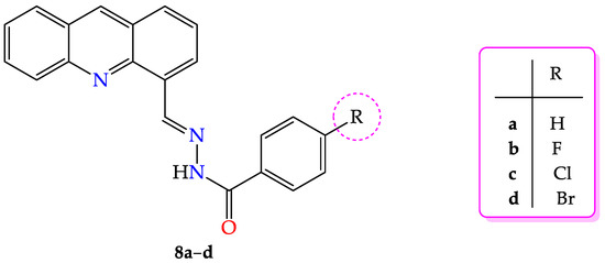 - Vilková, M.; Hudáčová, M.; Palušeková, N.; Jendželovský, R.; Almáši, M.; Béres, T.; Fedoročko, P.; Kožurková, M. Acridine Based N-Acylhydrazone Derivatives as Potential Anticancer Agents: Synthesis, Characterization and ctDNA/HSA Spectroscopic Binding Properties. Molecules 2022, 27, 2883. [Google Scholar] [CrossRef] [PubMed]