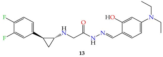 - Sun, K.; Peng, J.-D.; Suo, F.-Z.; Zhang, T.; Fu, Y.-D.; Zheng, Y.-C.; Liu, H.-M. Discovery of tranylcypromine analogs with an acylhydrazone substituent as LSD1 inactivators: Design, synthesis and their biological evaluation. Bioorganic Med. Chem. Lett. 2017, 27, 5036–5039. [Google Scholar] [CrossRef] [PubMed]