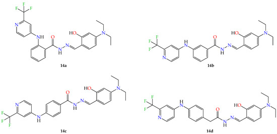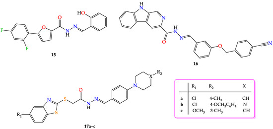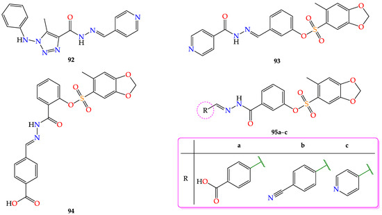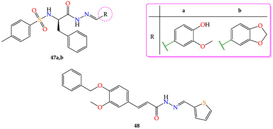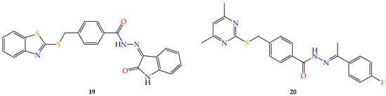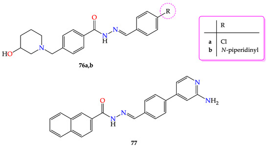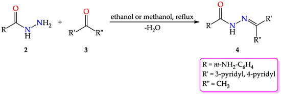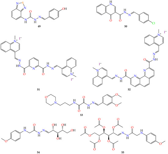 - de Oliveira Carneiro Brum, J.; França, T.C.C.; LaPlante, S.R.; Villar, J.D.F. Synthesis and Biological Activity of Hydrazones and Derivatives: A Review. Mini-Rev. Med. Chem. 2020, 20, 342–368. [Google Scholar] [CrossRef]