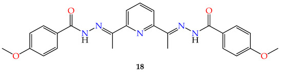 - Yao, Q.; Qi, J.; Zheng, Y.; Qian, K.; Wei, L.; Maimaitiyiming, M.; Cheng, Z.; Wang, Y. Synthesis, anticancer activity and mechanism of iron chelator derived from 2,6-diacetylpyridine bis(acylhydrazones). J. Inorg. Biochem. 2019, 193, 1–8. [Google Scholar] [CrossRef]