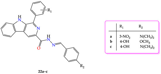 - Barbosa, V.A.; Formagio, A.S.N.; Savariz, F.C.; Foglio, M.A.; Spindola, H.M.; de Carvalho, J.E.; Meyer, E.; Sarragiotto, M.H. Synthesis and antitumor activity of β-carboline 3-(substituted-carbohydrazide) derivatives. Bioorganic Med. Chem. 2011, 19, 6400–6408. [Google Scholar] [CrossRef]