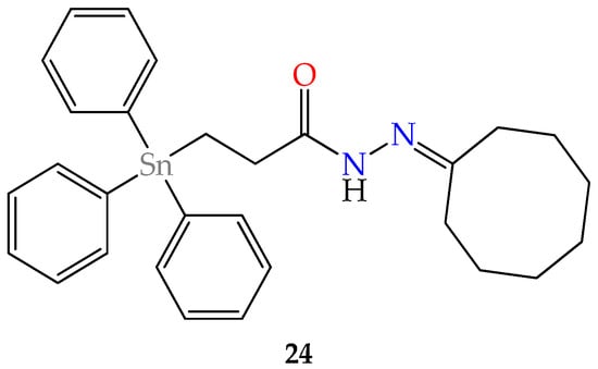 - Liu, X.; Tang, Y.; He, X.; Ge, X.; Liu, J.; Meng, X.; Shao, M.; Jin, Y.; Tian, L.; Liu, Z. Triphenyltin(IV) acylhydrazone compounds: Synthesis, structure and bioactivity. J. Inorg. Biochem. 2019, 191, 194–202. [Google Scholar] [CrossRef] [PubMed]