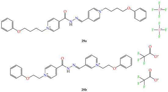 - Rezki, N.; Al-Sodies, S.A.; Ahmed, H.E.A.; Ihmaid, S.; Messali, M.; Ahmed, S.; Aouad, M.R. A novel dicationic ionic liquids encompassing pyridinium hydrazone-phenoxy conjugates as antimicrobial agents targeting diverse high resistant microbial strains. J. Mol. Liq. 2019, 284, 431–444. [Google Scholar] [CrossRef]