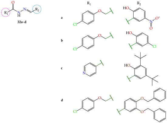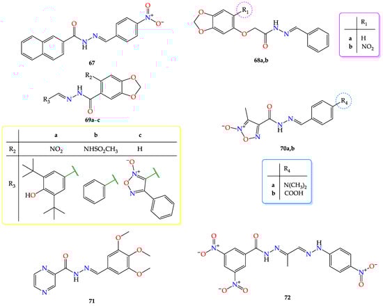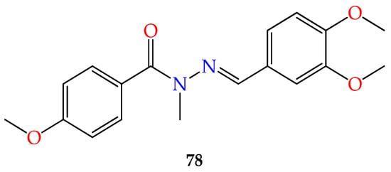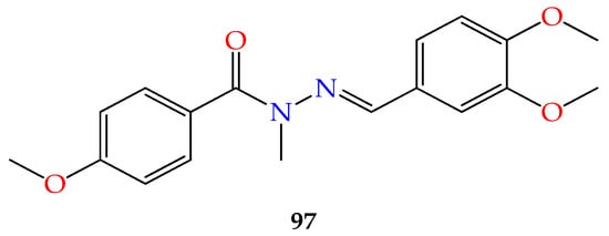 - Meira, C.S.; dos Santos Filho, J.M.; Sousa, C.C.; Anjos, P.S.; Cerqueira, J.V.; Dias Neto, H.A.; da Silveira, R.G.; Russo, H.M.; Wolfender, J.-L.; Queiroz, E.F.; et al. Structural design, synthesis and substituent effect of hydrazone-N-acylhydrazones reveal potent immunomodulatory agents. Bioorganic Med. Chem. 2018, 26, 1971–1985. [Google Scholar] [CrossRef] [PubMed]