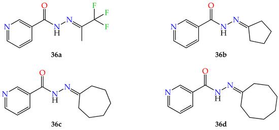 - Shah, M.A.; Uddin, A.; Shah, M.R.; Ali, I.; Ullah, R.; Hannan, P.A.; Hussain, H. Synthesis and Characterization of Novel Hydrazone Derivatives of Isonicotinic Hydrazide and Their Evaluation for Antibacterial and Cytotoxic Potential. Molecules 2022, 27, 6770. [Google Scholar] [CrossRef]
