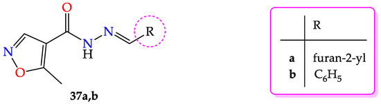 - Ünsal-Tan, O.; Özden, K.; Rauk, A.; Balkan, A. Synthesis and cyclooxygenase inhibitory activities of some N-acylhydrazone derivatives of isoxazolo[4,5-d]pyridazin-4(5H)-ones. Eur. J. Med. Chem. 2010, 45, 2345–2352. [Google Scholar] [CrossRef]
