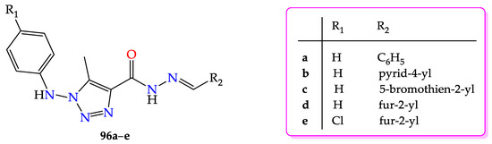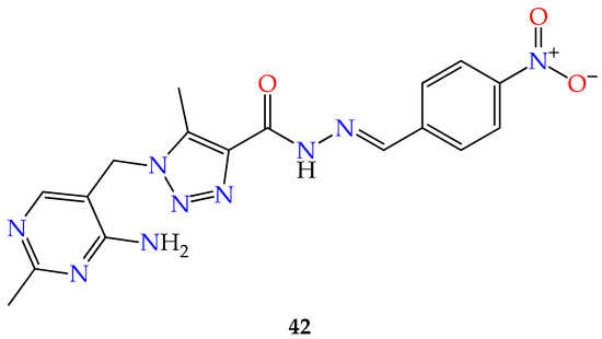 - Jordão, A.K.; Ferreira, V.F.; Lima, E.S.; de Souza, M.C.B.V.; Carlos, E.C.L.; Castro, H.C.; Geraldo, R.B.; Rodrigues, C.R.; Almeida, M.C.B.; Cunha, A.C. Synthesis, antiplatelet and in silico evaluations of novel N-substituted-phenylamino-5-methyl-1H-1,2,3-triazole-4-carbohydrazides. Bioorganic Med. Chem. 2009, 17, 3713–3719. [Google Scholar] [CrossRef]