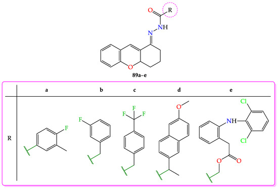 - Kümmerle, A.E.; Vieira, M.M.; Schmitt, M.; Miranda, A.L.P.; Fraga, C.A.M.; Bourguignon, J.-J.; Barreiro, E.J. Design, synthesis and analgesic properties of novel conformationally-restricted N-acylhydrazones (NAH). Bioorganic Med. Chem. Lett. 2009, 19, 4963–4966. [Google Scholar] [CrossRef] [PubMed]